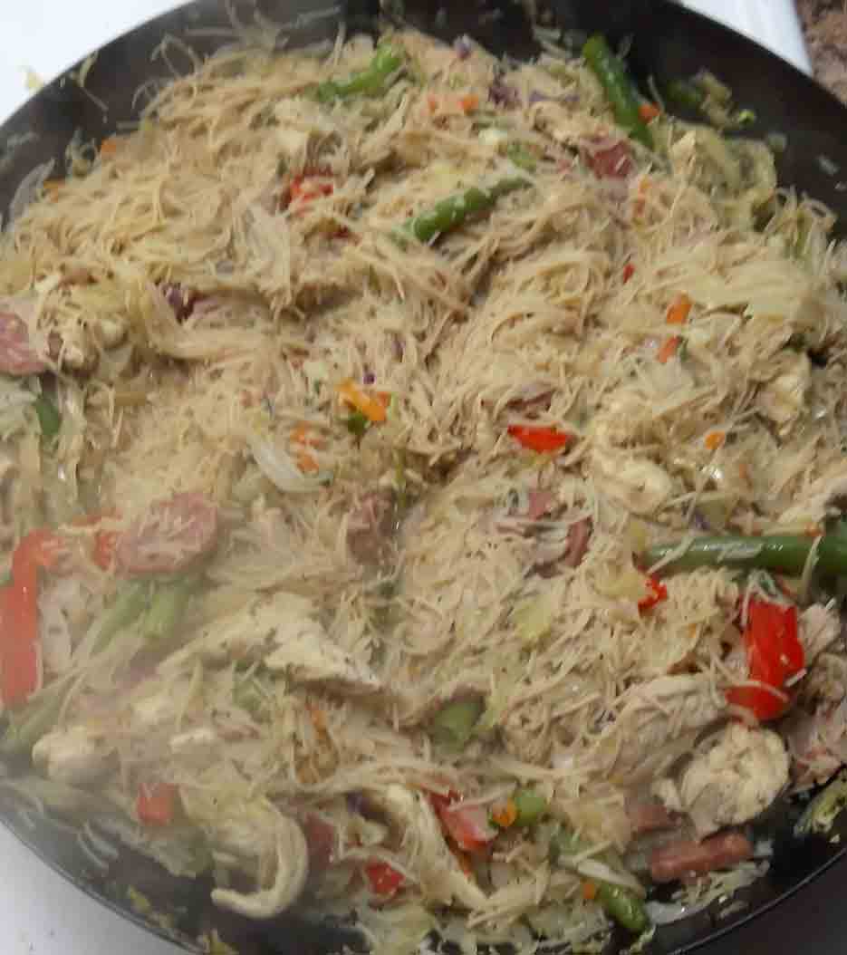 Editorial Review: some wise girls from Philippines brought to my attention that this is in fact Pancit Bihon. That calls for an update in the story: The fisherman, impressed with Pan Xit's beauty, dropped on one knee and asked her: Would you be my honey? Bi hon? she asked ( cause she didn't understand his language). And they lived happily ever after and she was called PanXit BiHon' from that day further. (Also rice doesn't have gluten apparently. I have no story update for that.)